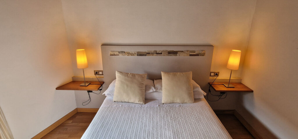 Disponemos de cinco habitaciones con cama de matrimonio o dobles y cuarto de baño. Todas incluyen TV, minibar, conexión a internet y secador de pelo.